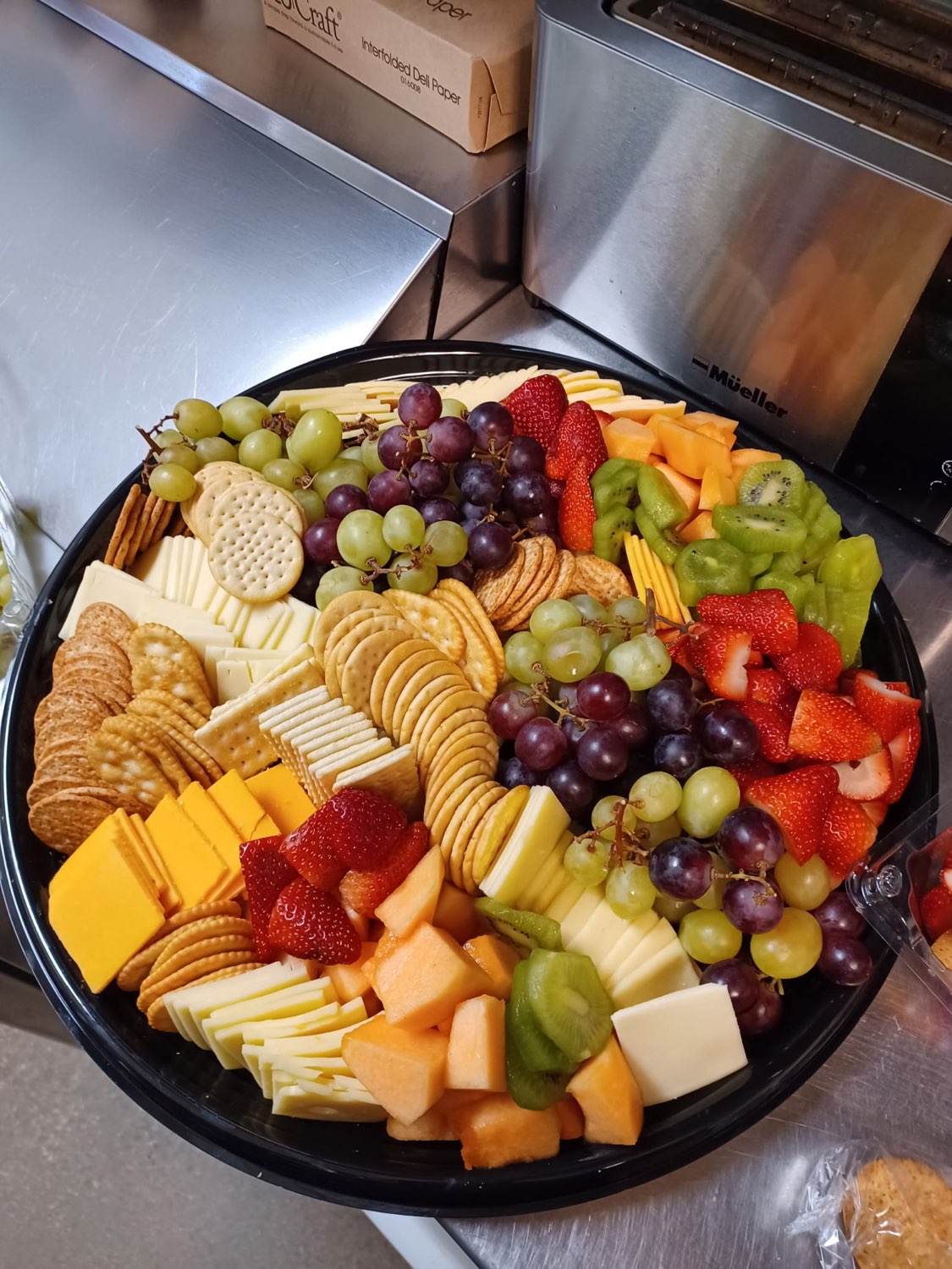 Platter with assorted fresh fruit and cheese - Comfortably serves 20