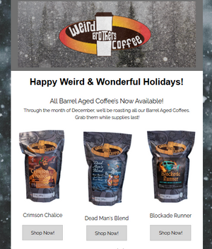 All three Barrel Aged coffees are back—plus fresh beans, merch, and holiday gifting favorites.