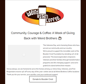 Use these blocks to share your brand's story. You can focus on a particular collection,Join us as we honor Veterans, support families in need, and unleash our newest bold brew—plus, find us at the DMV Chocolate & Coffee Festival!