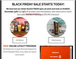 Beans & Merchandise are on sale all week… don’t miss your 15% savings!